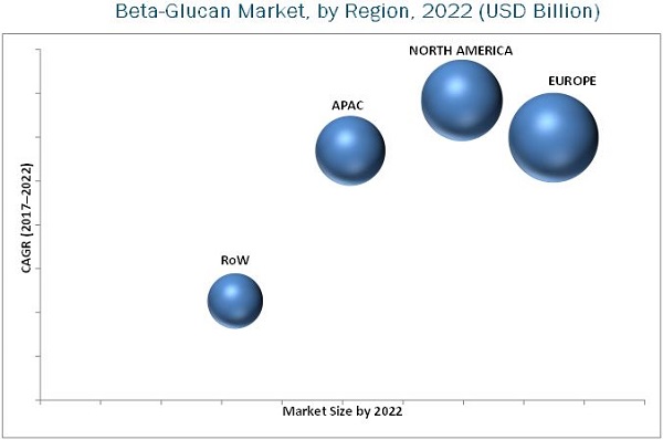Globally, the production of beta-glucan from cereal is expected to remain dominant, due to the high availability of raw materials and ease of extraction. North America is projected to grow at the highest CAGR from 2017 to 2022 while Europe is projected to be the largest market for beta-glucan from sourced from cereal, by 2022. Yeast as a source of beta-glucan is projected to be the second-largest market by 2022.