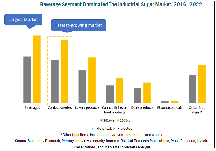 On the basis of type of industrial sugar, the white sugar segment is projected to drive the market growth.It is widely used in food applications, such as bakery, dairy, and confectioneries. The growth in retail market and the expansion of product portfolio are factors that are projected to drive the demand for the sugar confectionery market globally.The rise in awareness pertaining to health consciousness among consumers hasled to an increase in demand for brown sugar.The demand for liquid sugar has also increased among food & beverage manufacturers due to itsextended shelflife as compared to the types of industrial sugar.